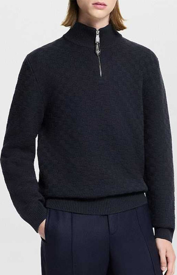 ZIP HIGH NECK CASHMERE BLEND SWEATER